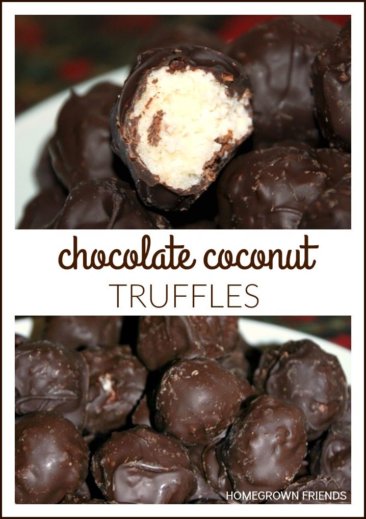 Recipe by Homegrown Friends at https://homegrownfriends.com/home/chocolate-coconut-truffles/